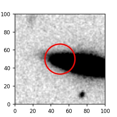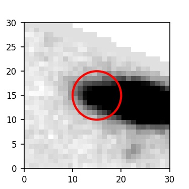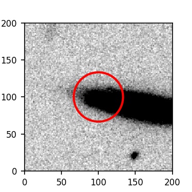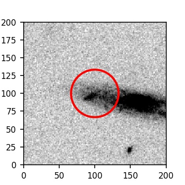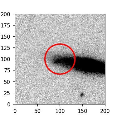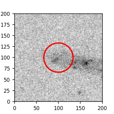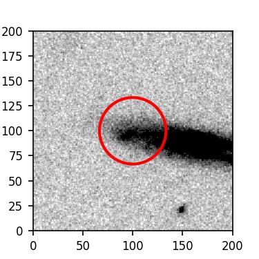The red circle in the various panels is 1" in radius. The images are 6"x6".