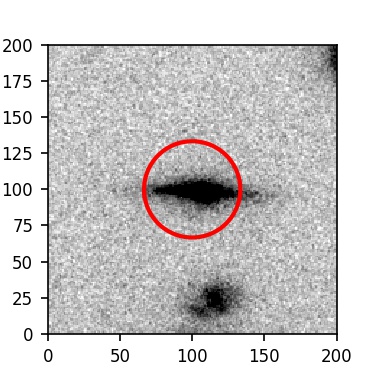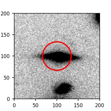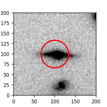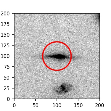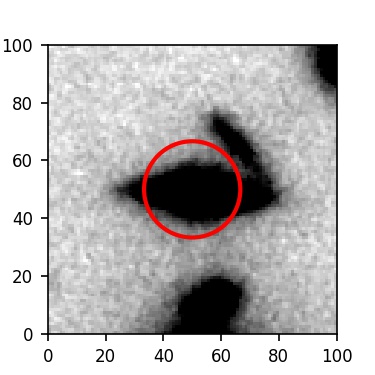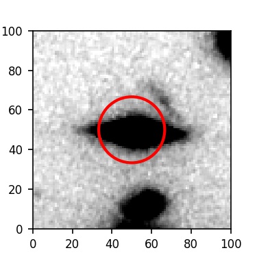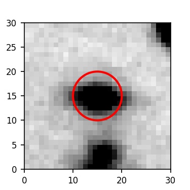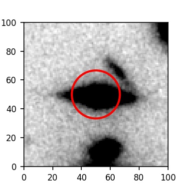 The red circle in the various panels is 1" in radius. The images are 6"x6".