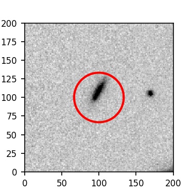 The red circle in the various panels is 1" in radius. The images are 6"x6".