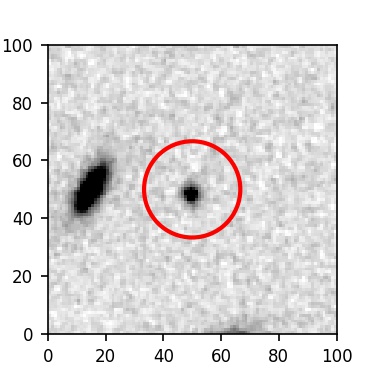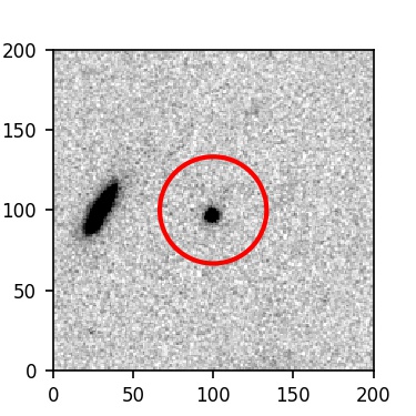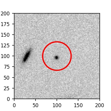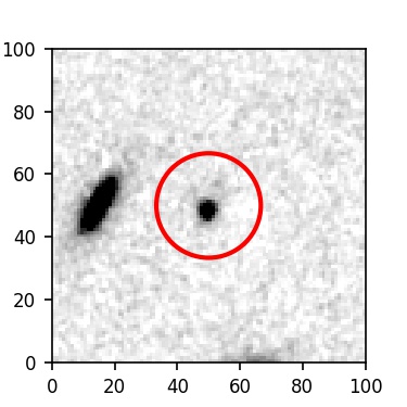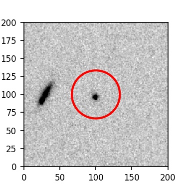 The red circle in the various panels is 1" in radius. The images are 6"x6".