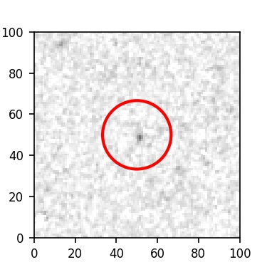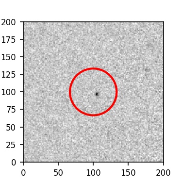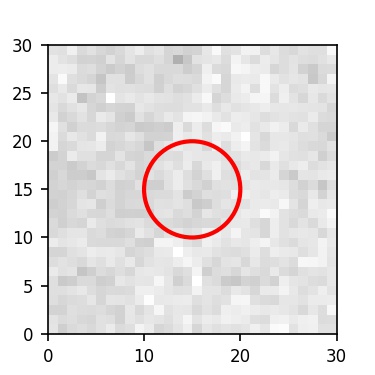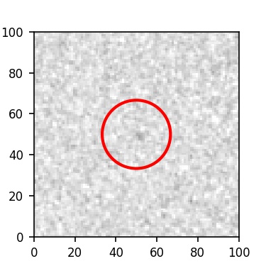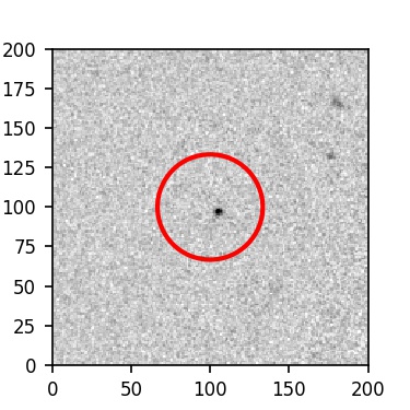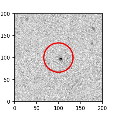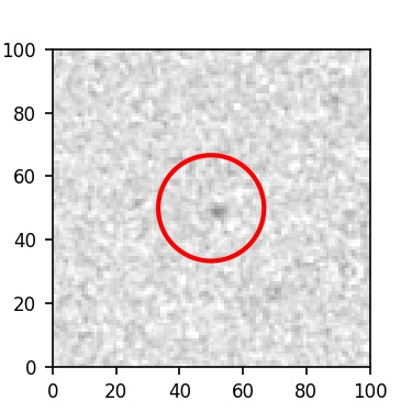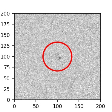 The red circle in the various panels is 1" in radius. The images are 6"x6".