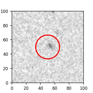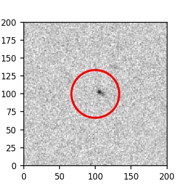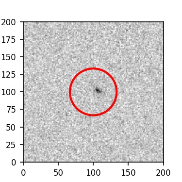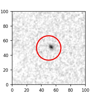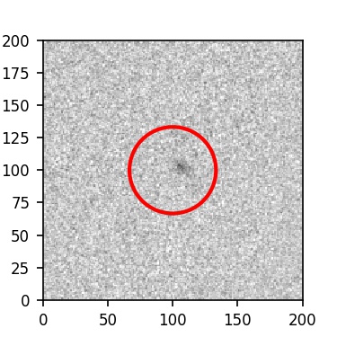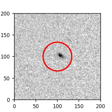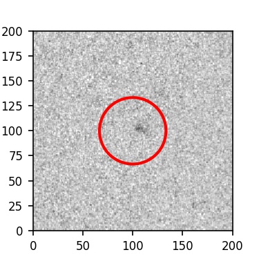 The red circle in the various panels is 1" in radius. The images are 6"x6".