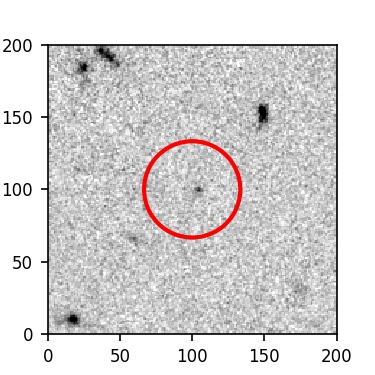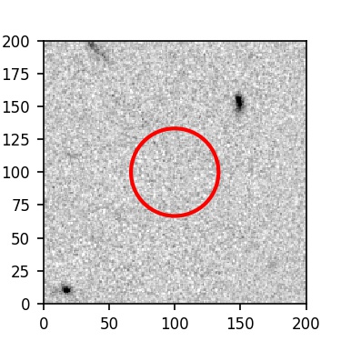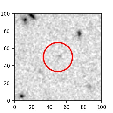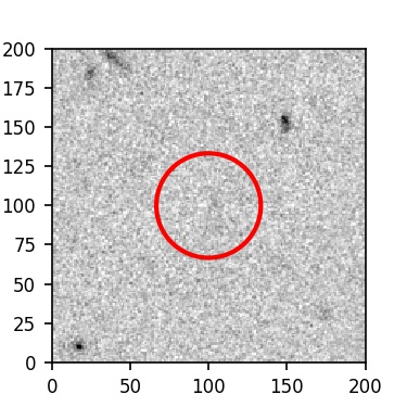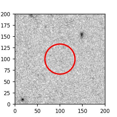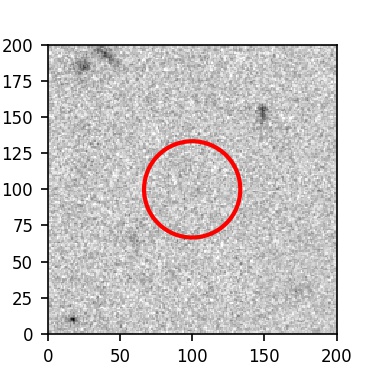 The red circle in the various panels is 1" in radius. The images are 6"x6".