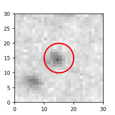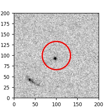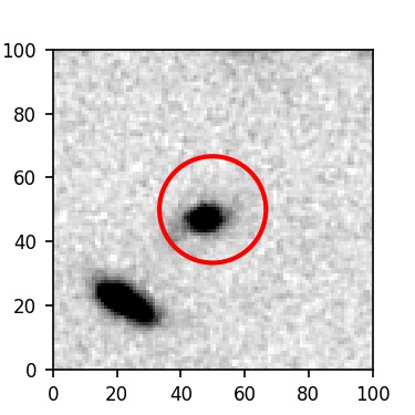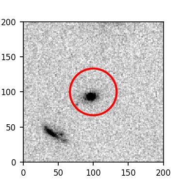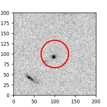 The red circle in the various panels is 1" in radius. The images are 6"x6".
