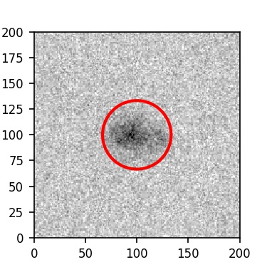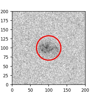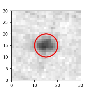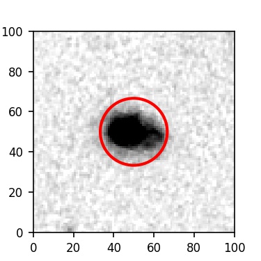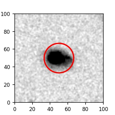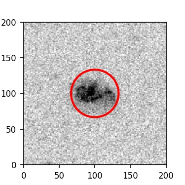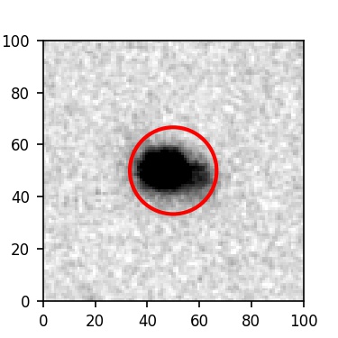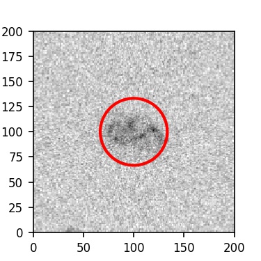 The red circle in the various panels is 1" in radius. The images are 6"x6".