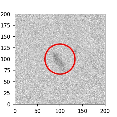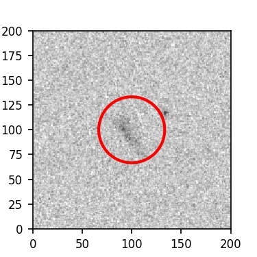 The red circle in the various panels is 1" in radius. The images are 6"x6".