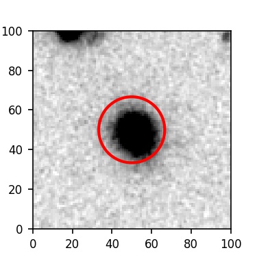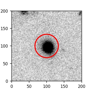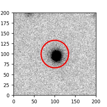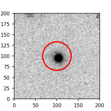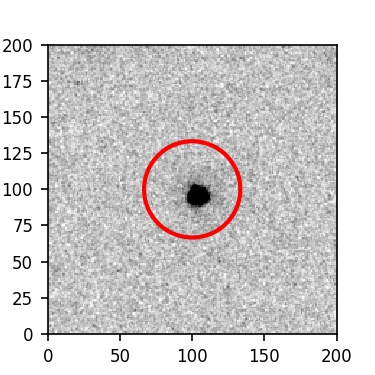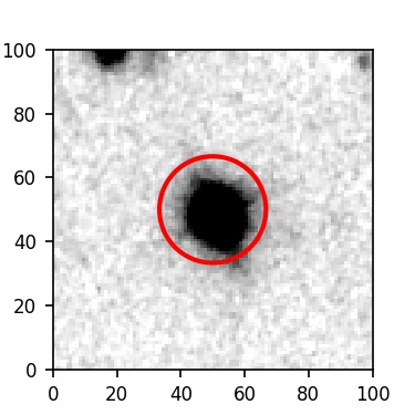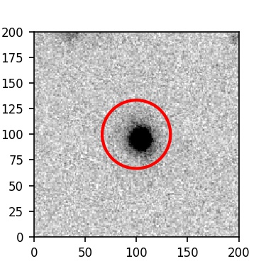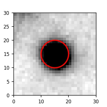 The red circle in the various panels is 1" in radius. The images are 6"x6".