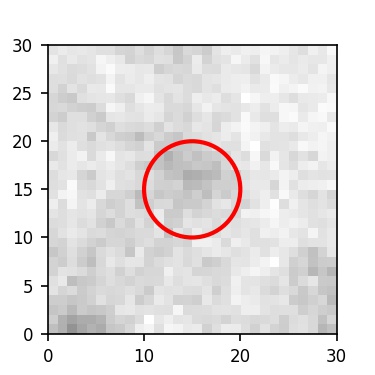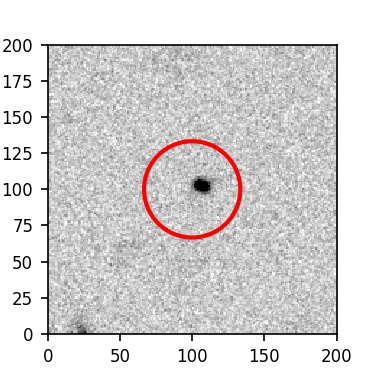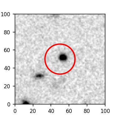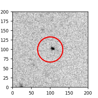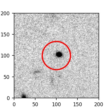 The red circle in the various panels is 1" in radius. The images are 6"x6".