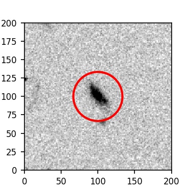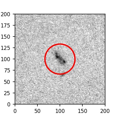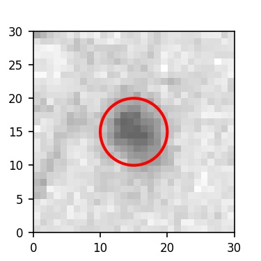 The red circle in the various panels is 1" in radius. The images are 6"x6".