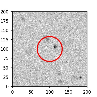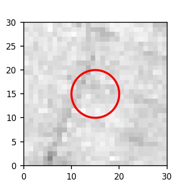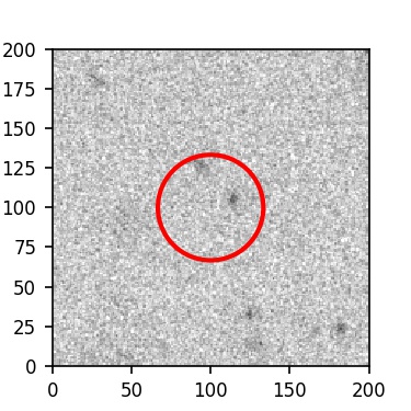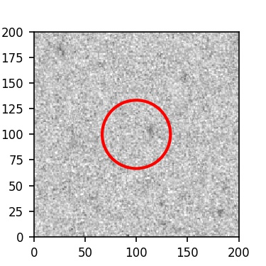 The red circle in the various panels is 1" in radius. The images are 6"x6".