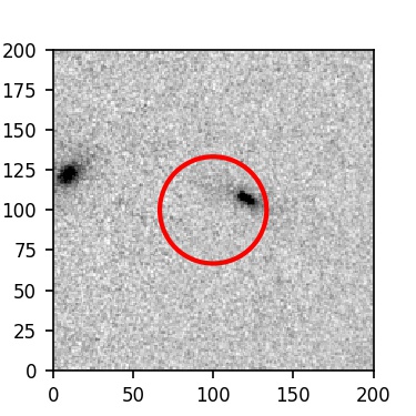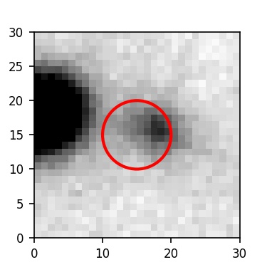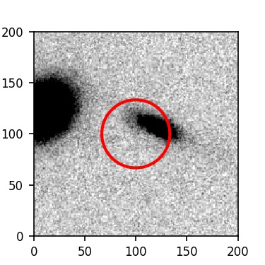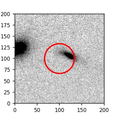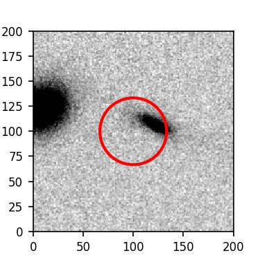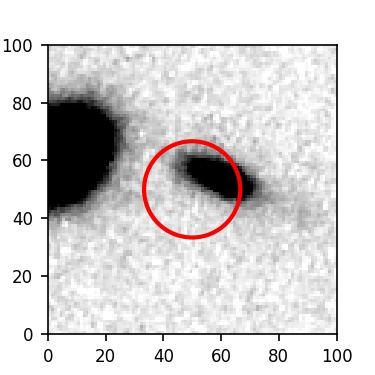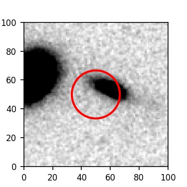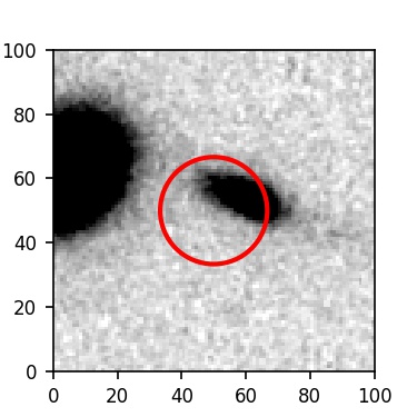 The red circle in the various panels is 1" in radius. The images are 6"x6".