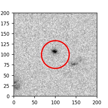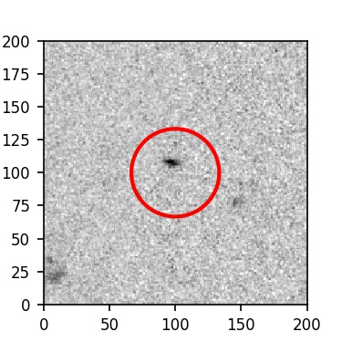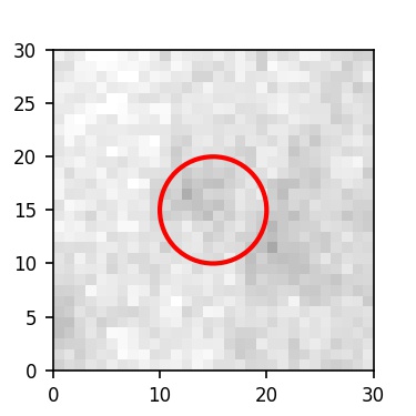 The red circle in the various panels is 1" in radius. The images are 6"x6".