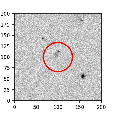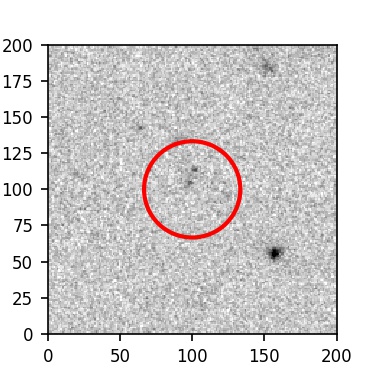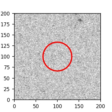 The red circle in the various panels is 1" in radius. The images are 6"x6".