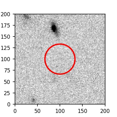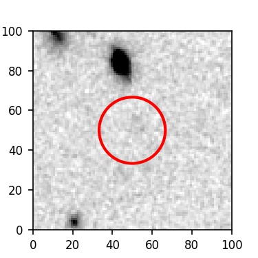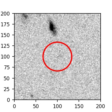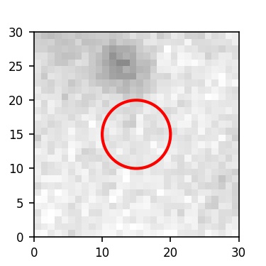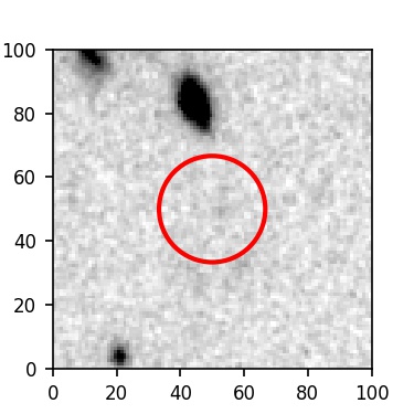 The red circle in the various panels is 1" in radius. The images are 6"x6".