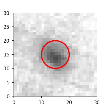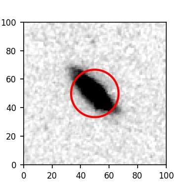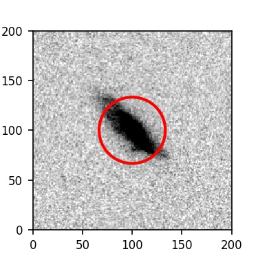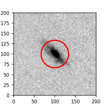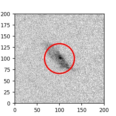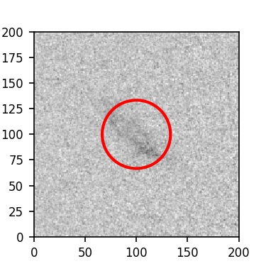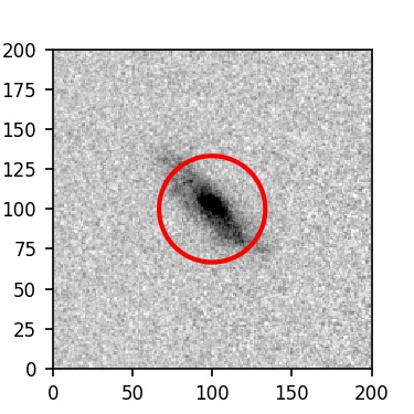 The red circle in the various panels is 1" in radius. The images are 6"x6".