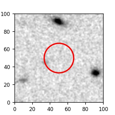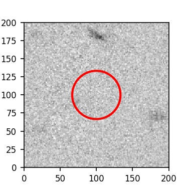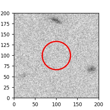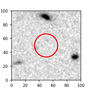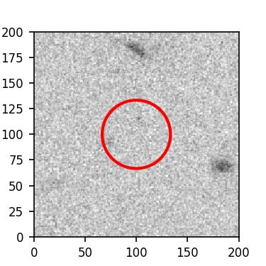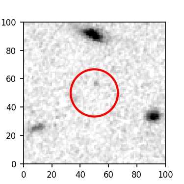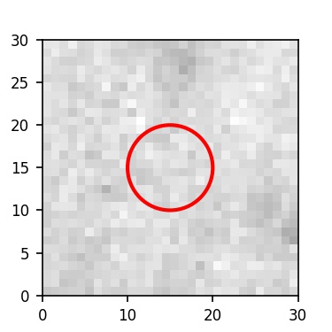 The red circle in the various panels is 1" in radius. The images are 6"x6".