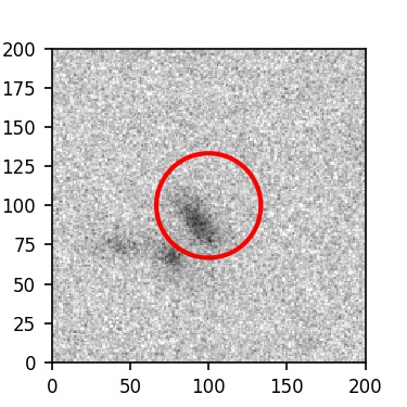 The red circle in the various panels is 1" in radius. The images are 6"x6".