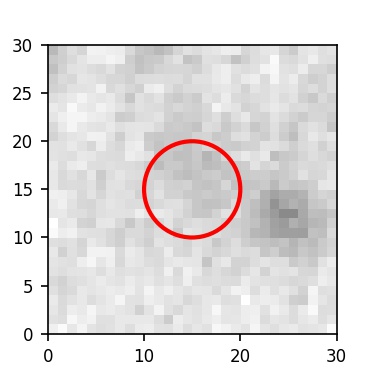 The red circle in the various panels is 1" in radius. The images are 6"x6".
