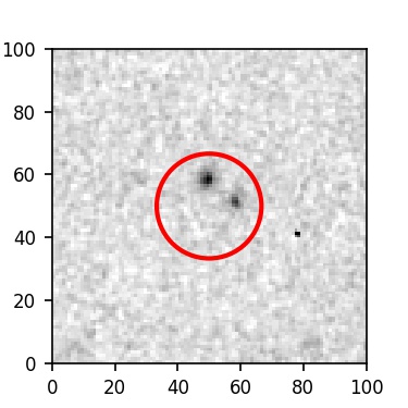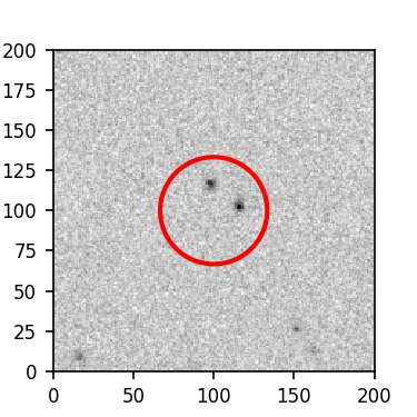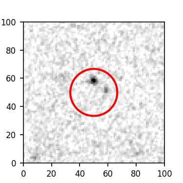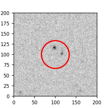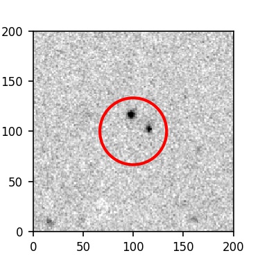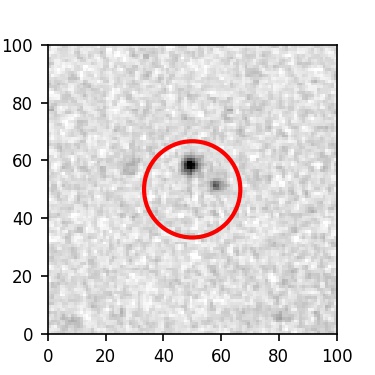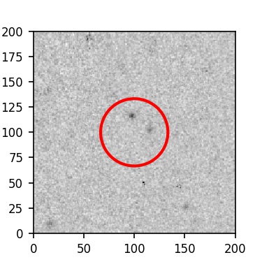 The red circle in the various panels is 1" in radius. The images are 6"x6".