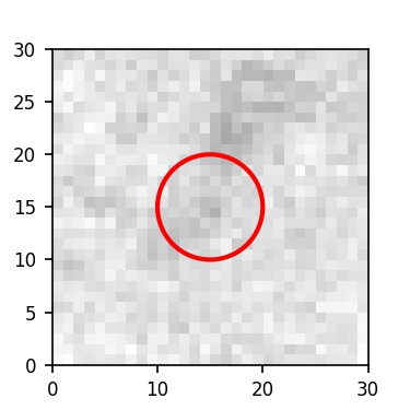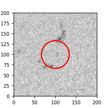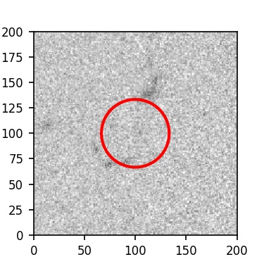 The red circle in the various panels is 1" in radius. The images are 6"x6".