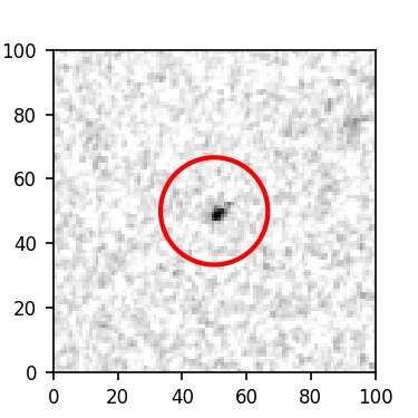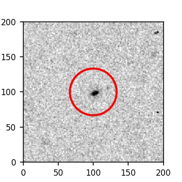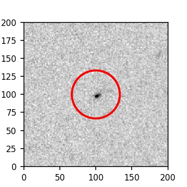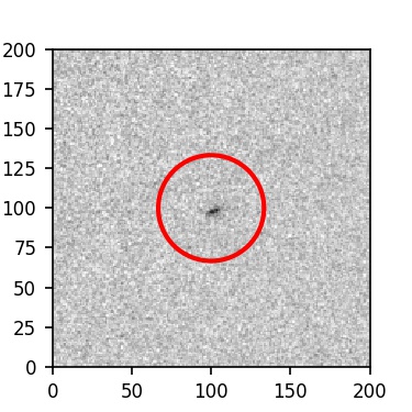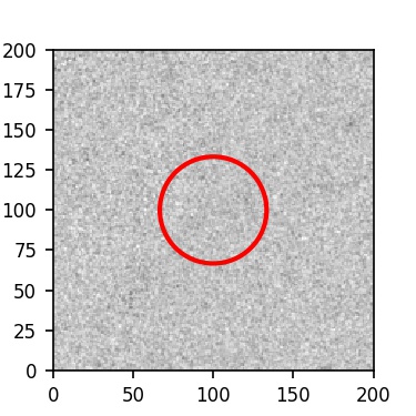 The red circle in the various panels is 1" in radius. The images are 6"x6".