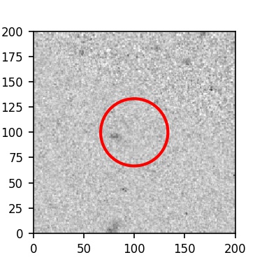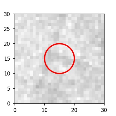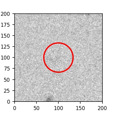 The red circle in the various panels is 1" in radius. The images are 6"x6".