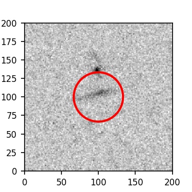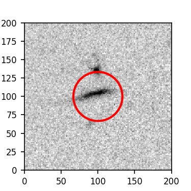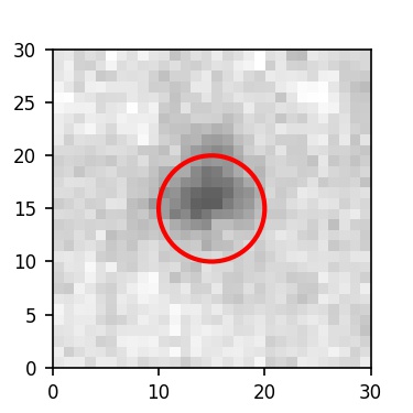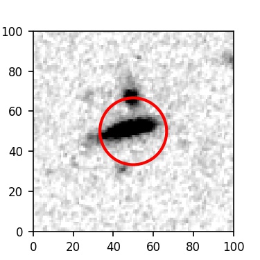 The red circle in the various panels is 1" in radius. The images are 6"x6".