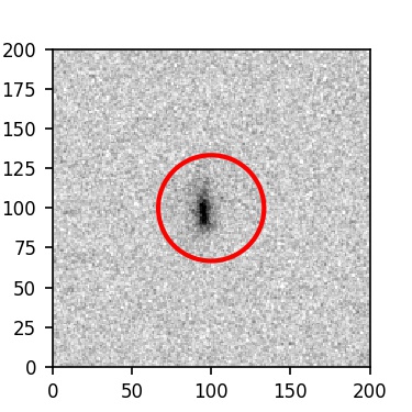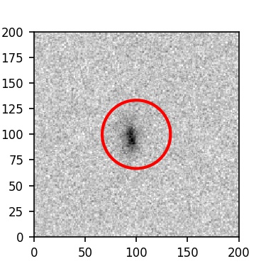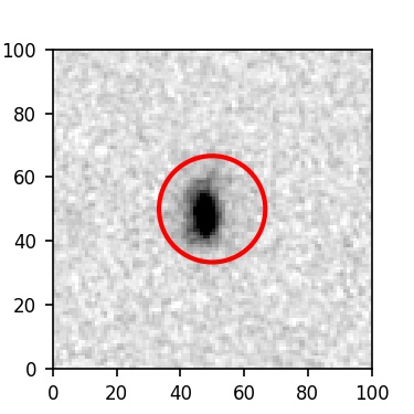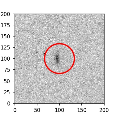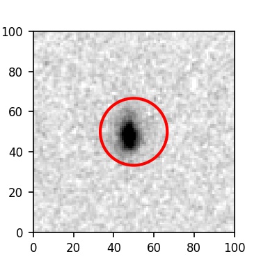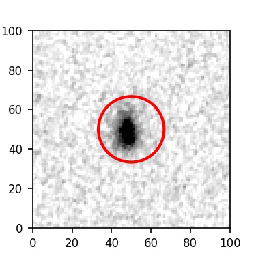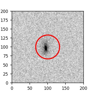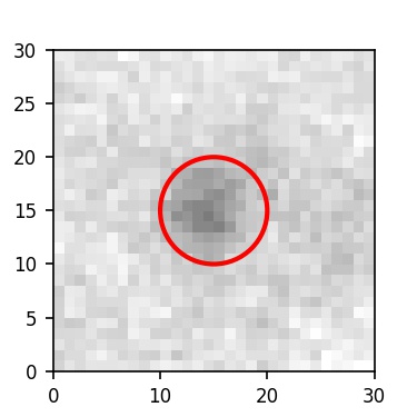 The red circle in the various panels is 1" in radius. The images are 6"x6".