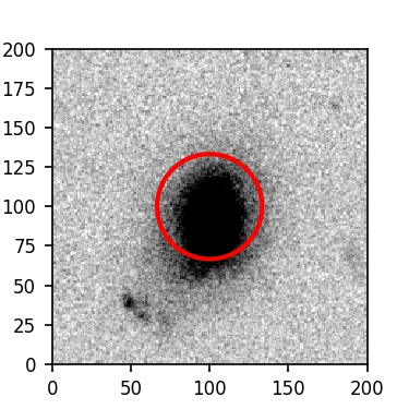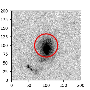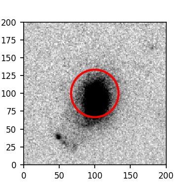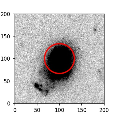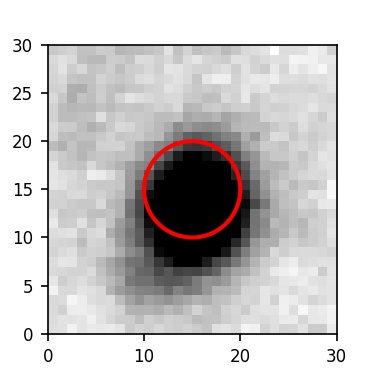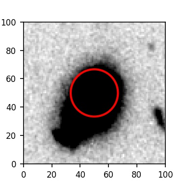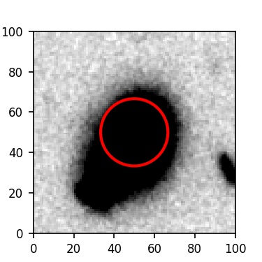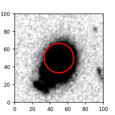 The red circle in the various panels is 1" in radius. The images are 6"x6".