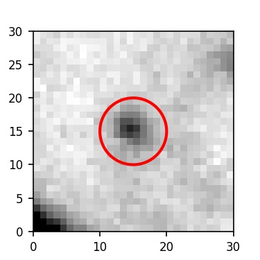 The red circle in the various panels is 1" in radius. The images are 6"x6".