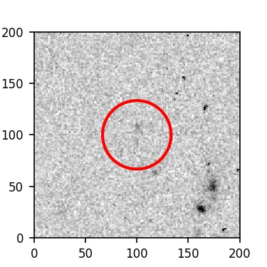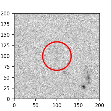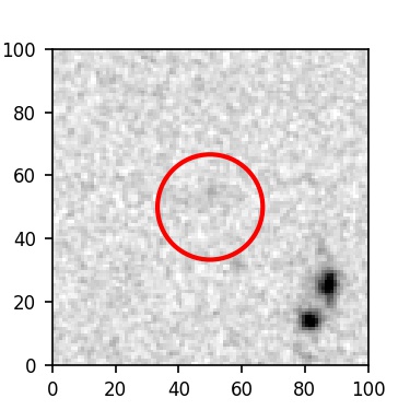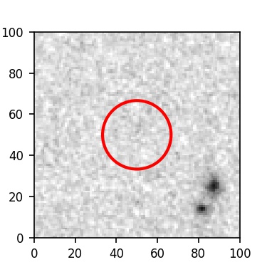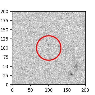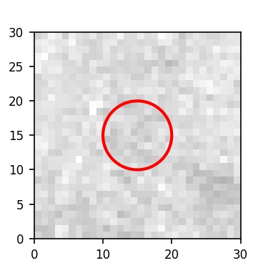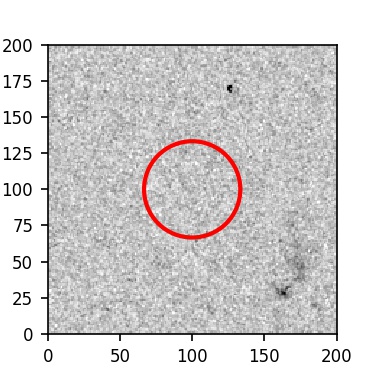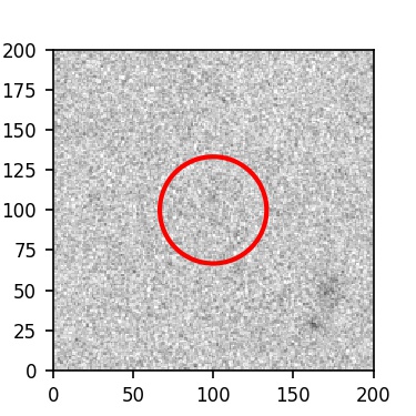 The red circle in the various panels is 1" in radius. The images are 6"x6".