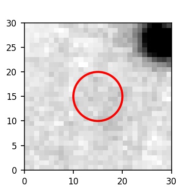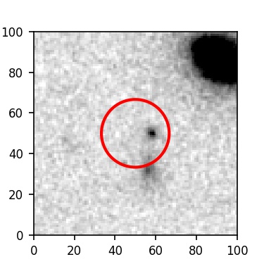 The red circle in the various panels is 1" in radius. The images are 6"x6".