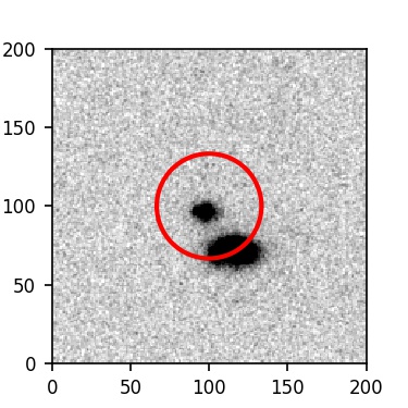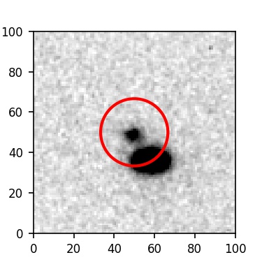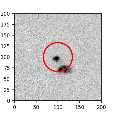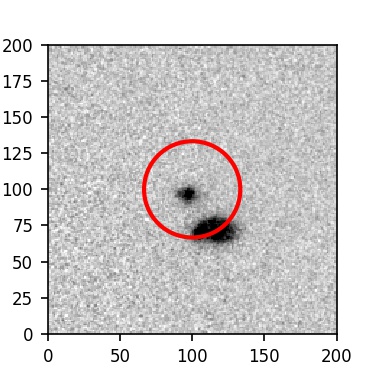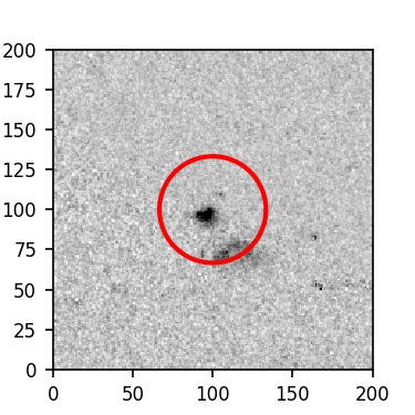 The red circle in the various panels is 1" in radius. The images are 6"x6".