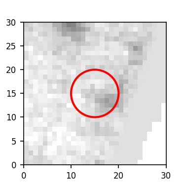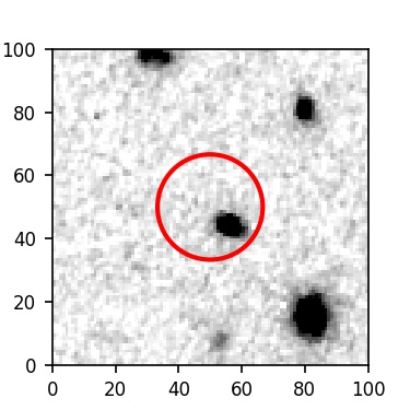The red circle in the various panels is 1" in radius. The images are 6"x6".