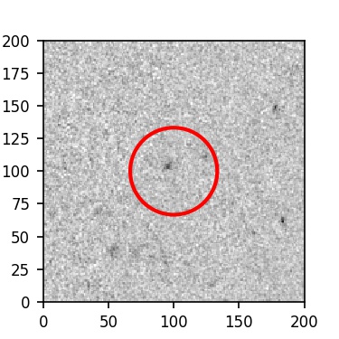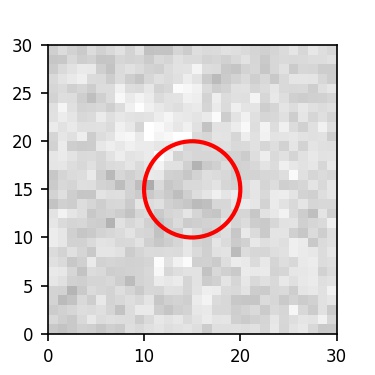The red circle in the various panels is 1" in radius. The images are 6"x6".