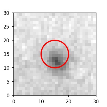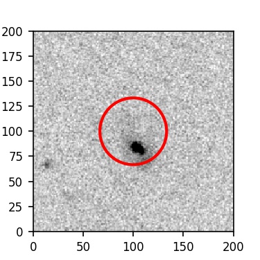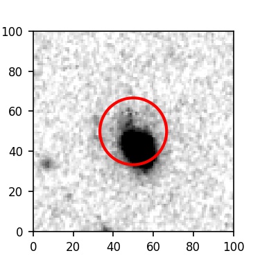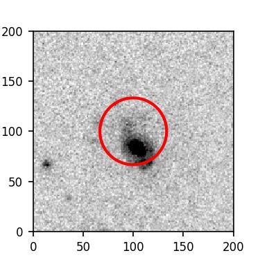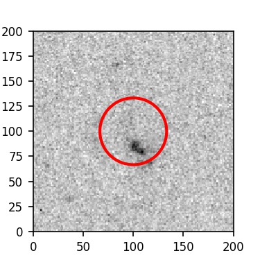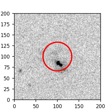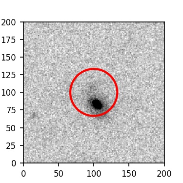 The red circle in the various panels is 1" in radius. The images are 6"x6".