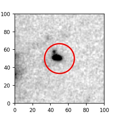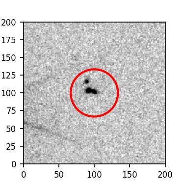 The red circle in the various panels is 1" in radius. The images are 6"x6".