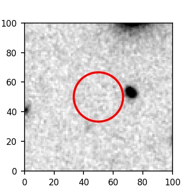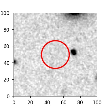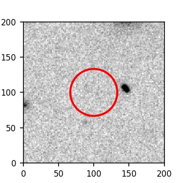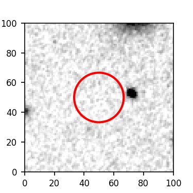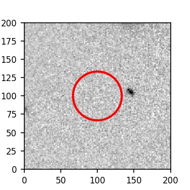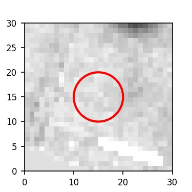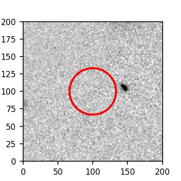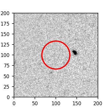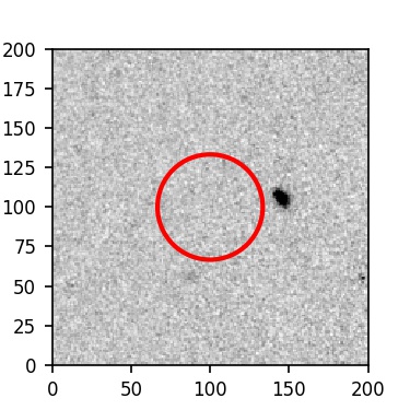 The red circle in the various panels is 1" in radius. The images are 6"x6".