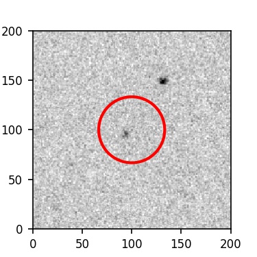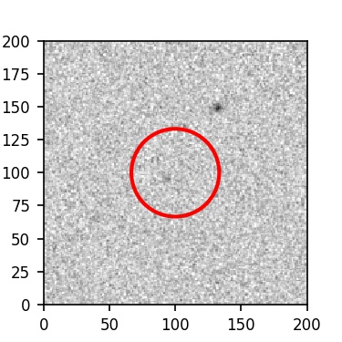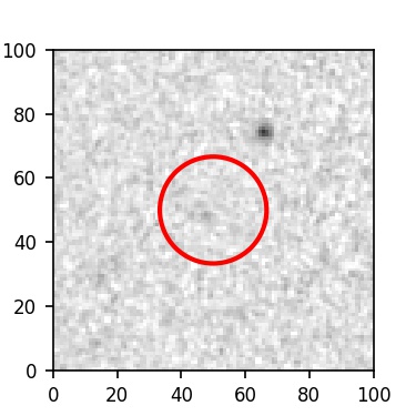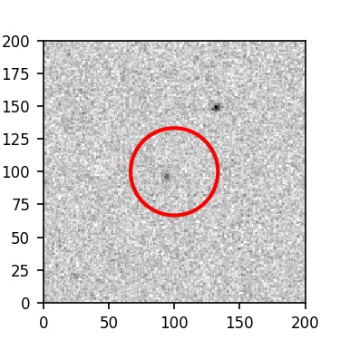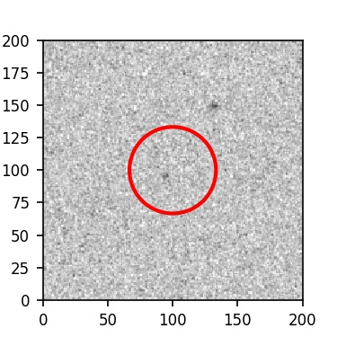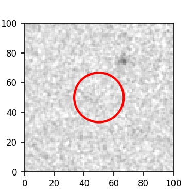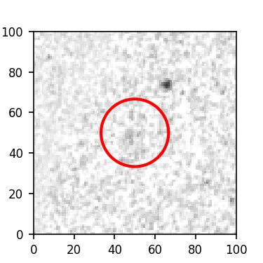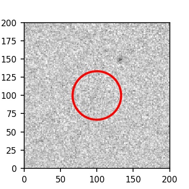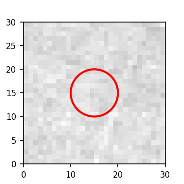 The red circle in the various panels is 1" in radius. The images are 6"x6".