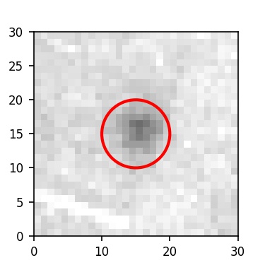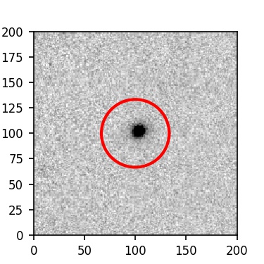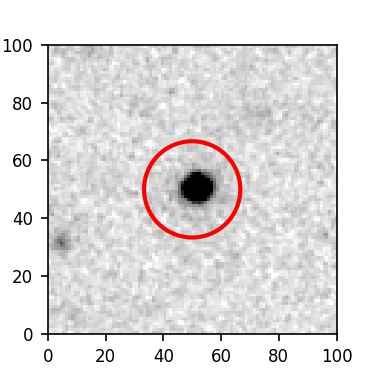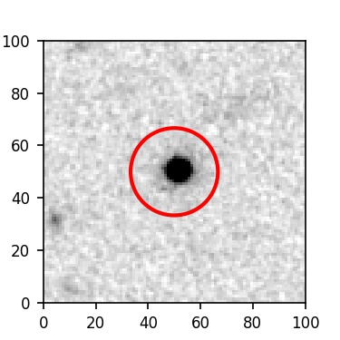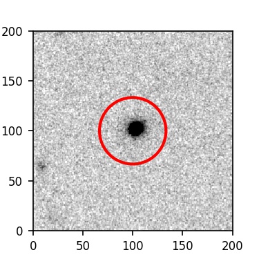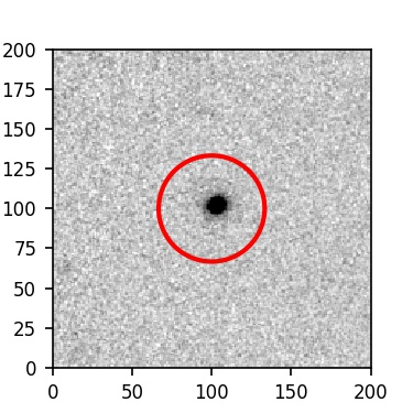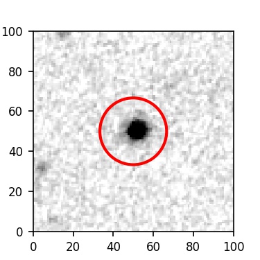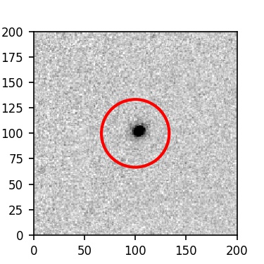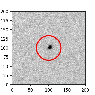 The red circle in the various panels is 1" in radius. The images are 6"x6".