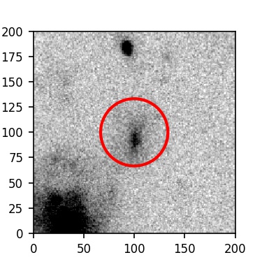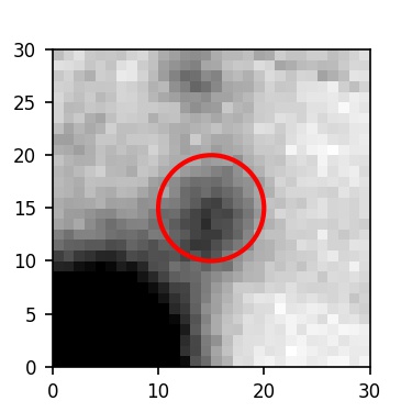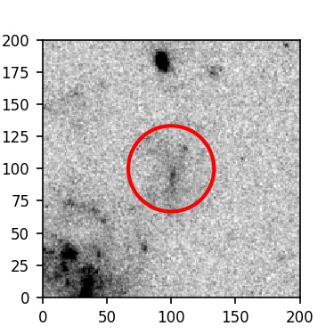 The red circle in the various panels is 1" in radius. The images are 6"x6".