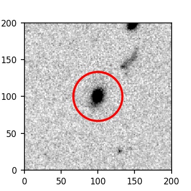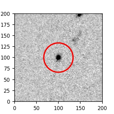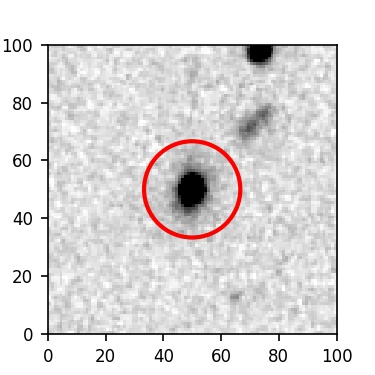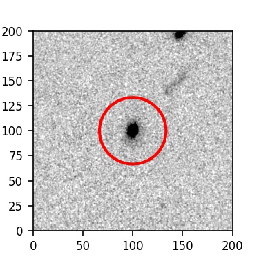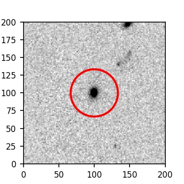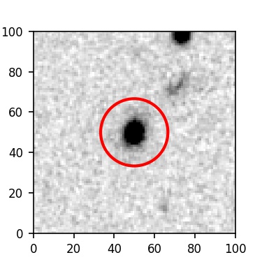 The red circle in the various panels is 1" in radius. The images are 6"x6".