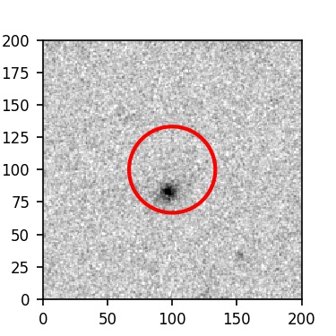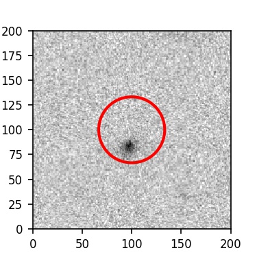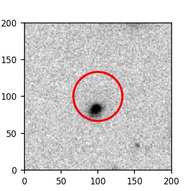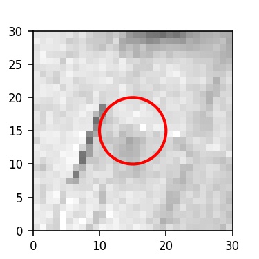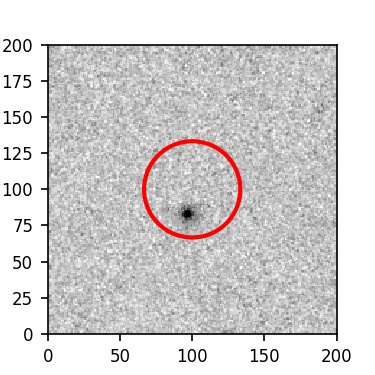 The red circle in the various panels is 1" in radius. The images are 6"x6".