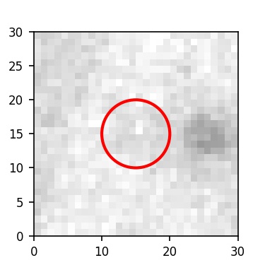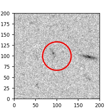 The red circle in the various panels is 1" in radius. The images are 6"x6".