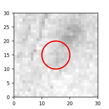 The red circle in the various panels is 1" in radius. The images are 6"x6".