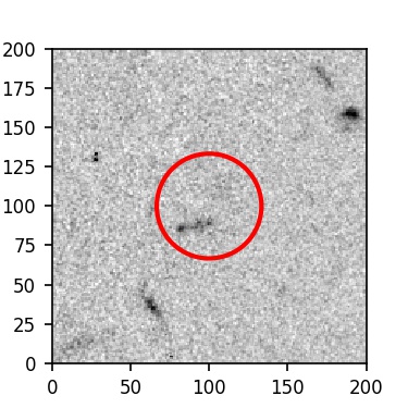 The red circle in the various panels is 1" in radius. The images are 6"x6".