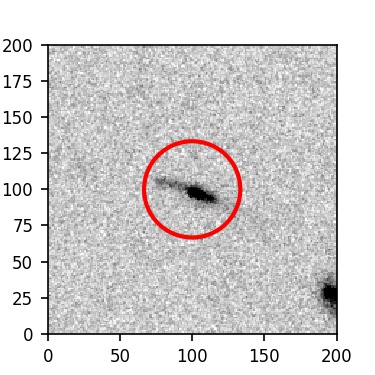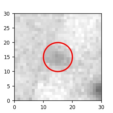 The red circle in the various panels is 1" in radius. The images are 6"x6".