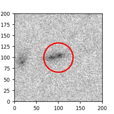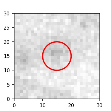 The red circle in the various panels is 1" in radius. The images are 6"x6".