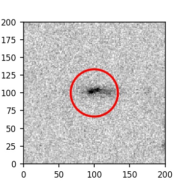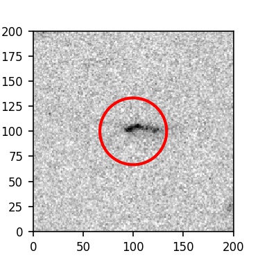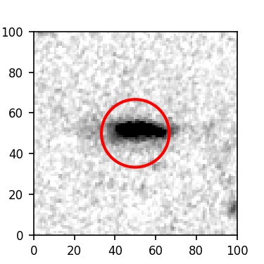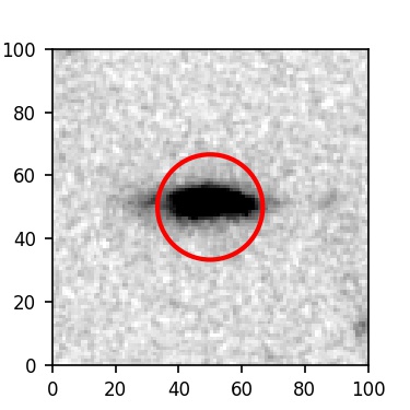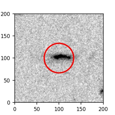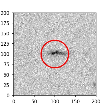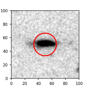 The red circle in the various panels is 1" in radius. The images are 6"x6".