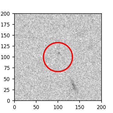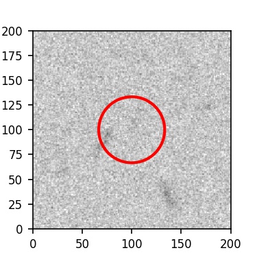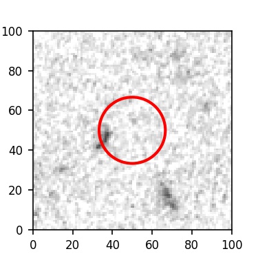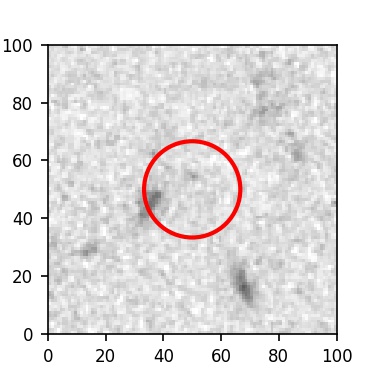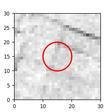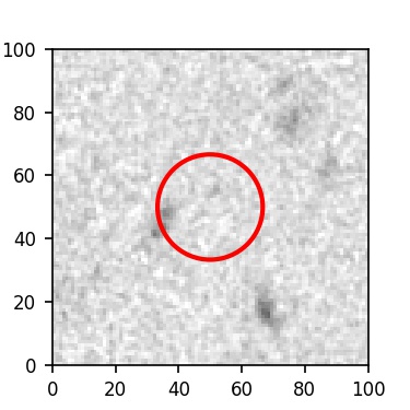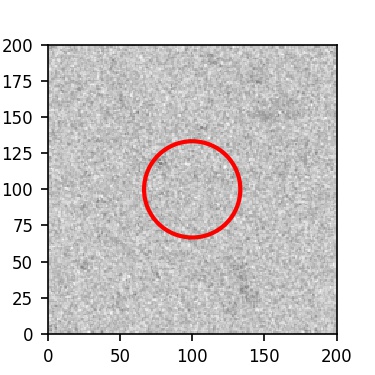 The red circle in the various panels is 1" in radius. The images are 6"x6".